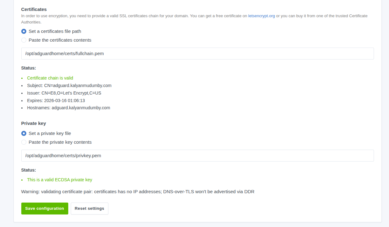 /opt/adguardhome/certs/fullchain.pem - Key:
