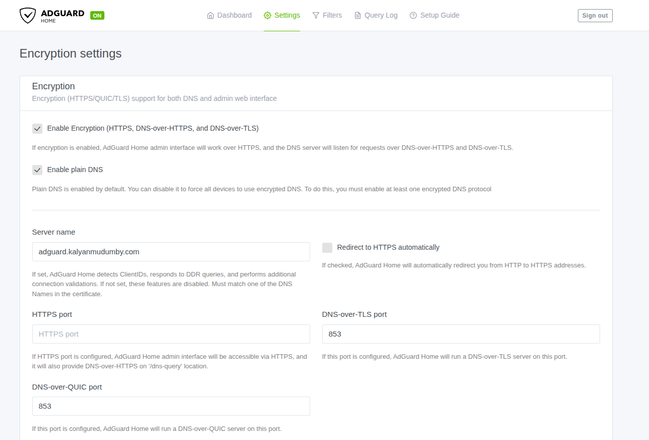 This post was primarily focused on configuring DoH and DoT, because there’s already plenty of content out there on the general AdGuard setup, and the UI is pretty intuitive anyway. The encryption part is where most I got stuck for hours during my first install, this blog post is my documentation of the process, and I hope it helps others along the way as well.