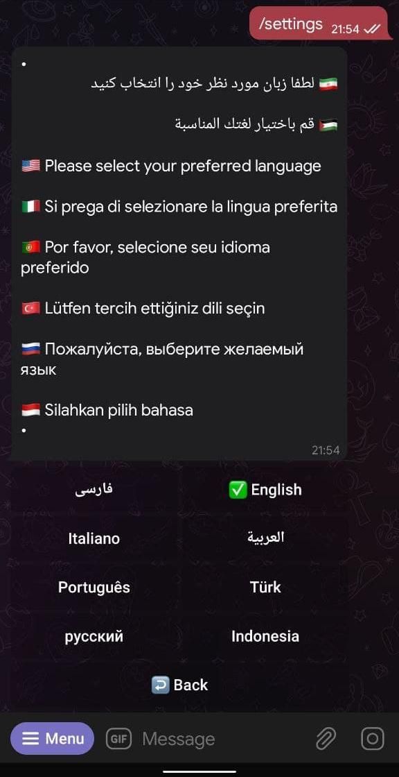 After you start the bot it will ask for your preferred language I choose english in this tutorial but you can choose your preferred language