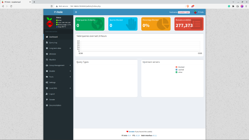 sudo systemctl restart lighttpdOur Web Interface is now accessible at http://192.168.0.210:8000/admin